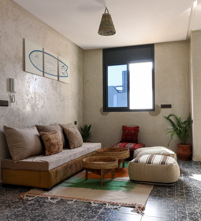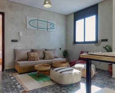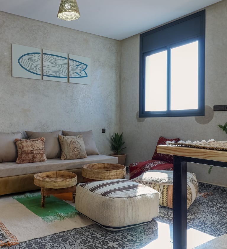 Our Surf House is just a 2-minute walk from Aftas Beach, known for its stunning beauty. Enjoy a tea at a beachfront café with a terrace, where you can soak in unforgettable sunset views during your stay in Mirleft!