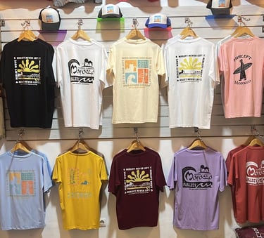 Discover our exclusive surf-inspired clothing line! Perfect for beach days and beyond, our collection includes T-shirts, hoodies, and caps.
