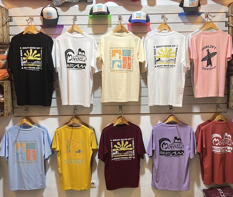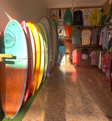 Visit our surf shop in the heart of Mirleft for everything you need to get started or keep riding the waves! Our shop offers a carefully selected range of surfboards for rental, apparel, and essential surf gear for all levels.